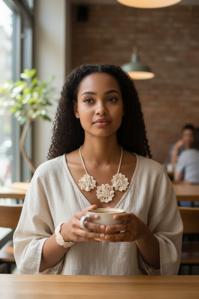 These works were born in different moments and circumstances: for specific people, for small shops, during calm periods and during very difficult times. Each piece carries a story, a mood, and the hands of the woman who made it.
