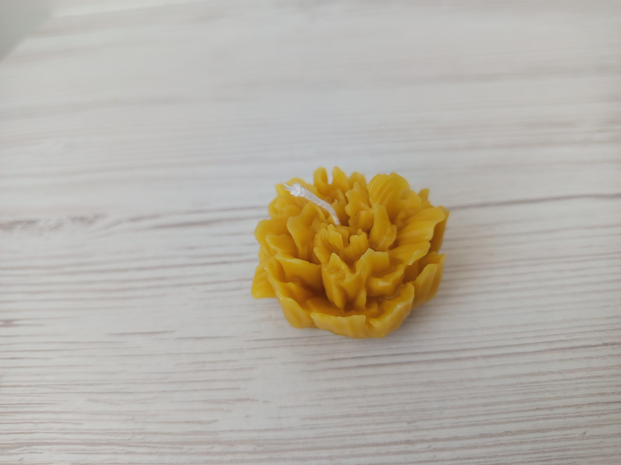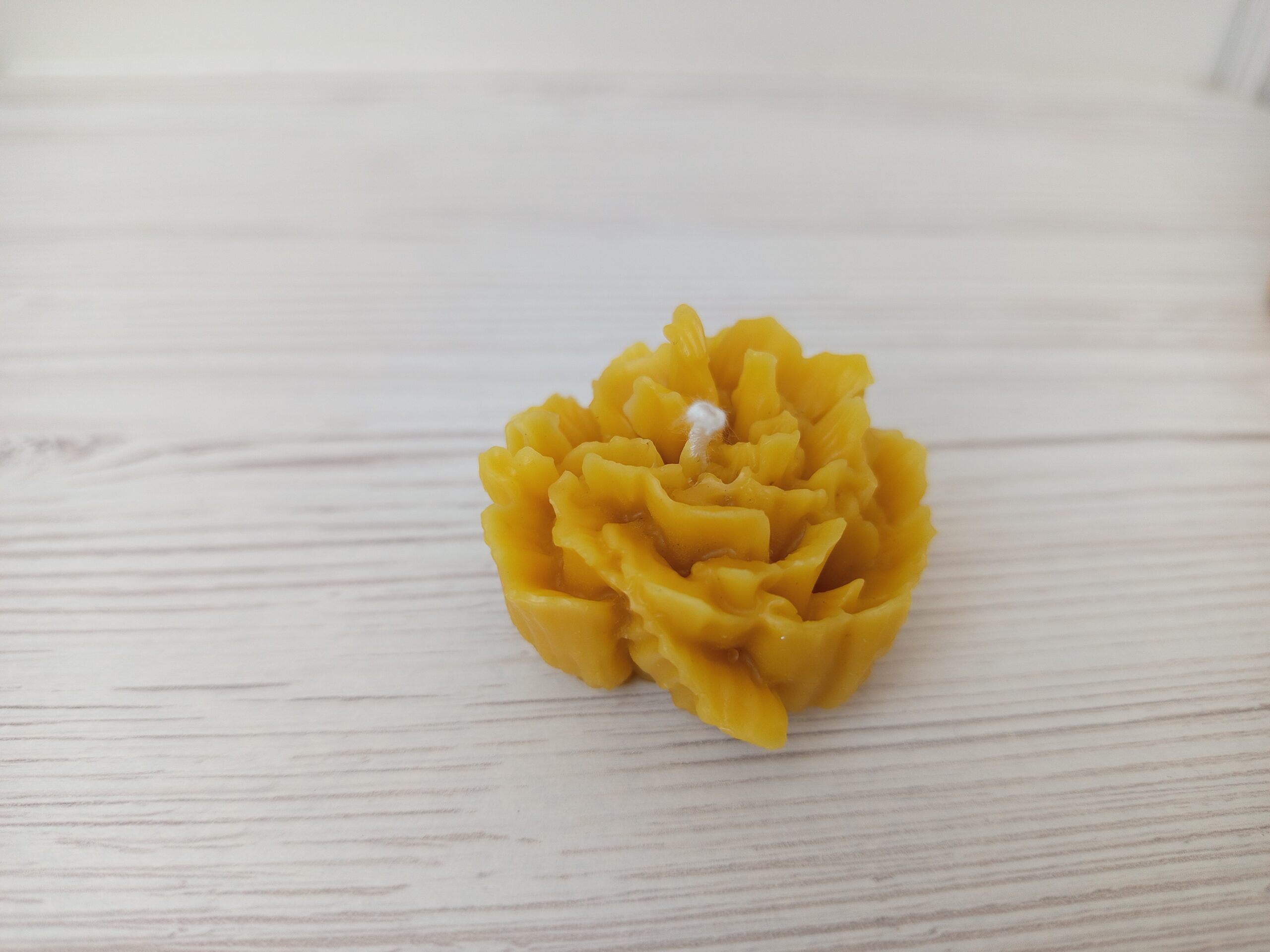 This handmade floral candle is crafted from 100% natural beeswax and finished with a cotton wick. The candle is hand-poured into a detailed silicone mold, creating a beautifully layered flower inspired by carnation / peony petals.