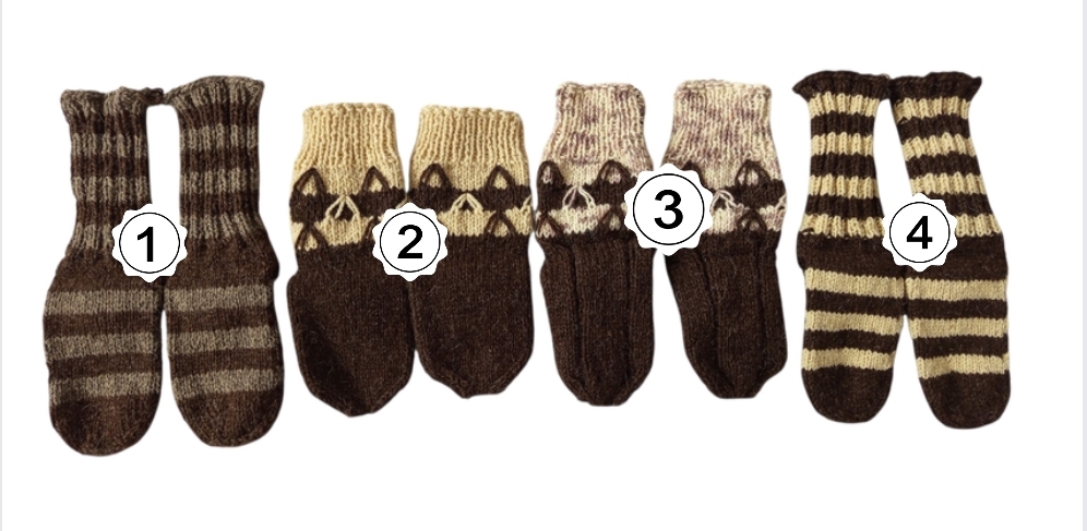 Please note: slight variations between pairs are natural and reflect the authentic handmade process and natural wool yarn.