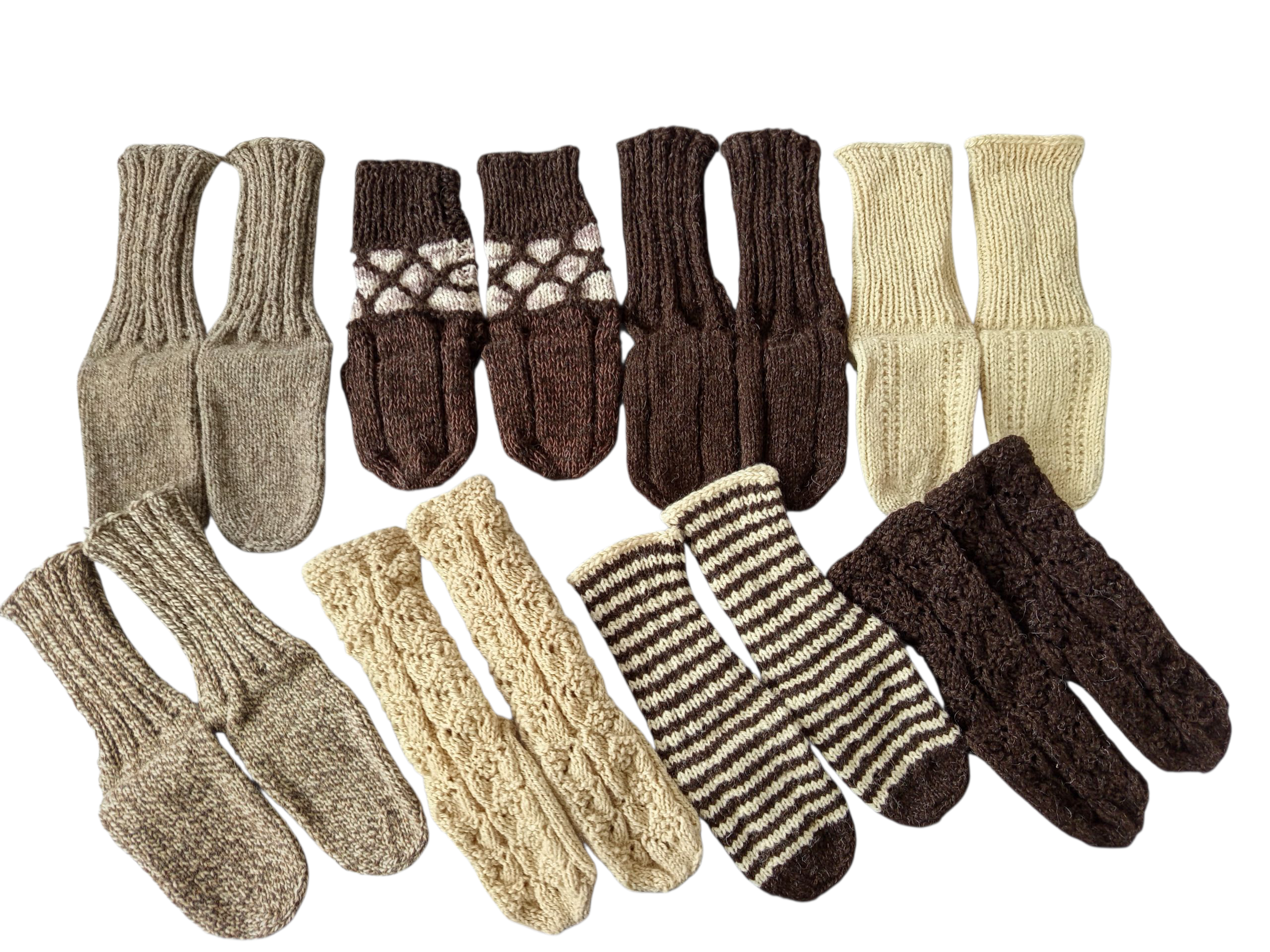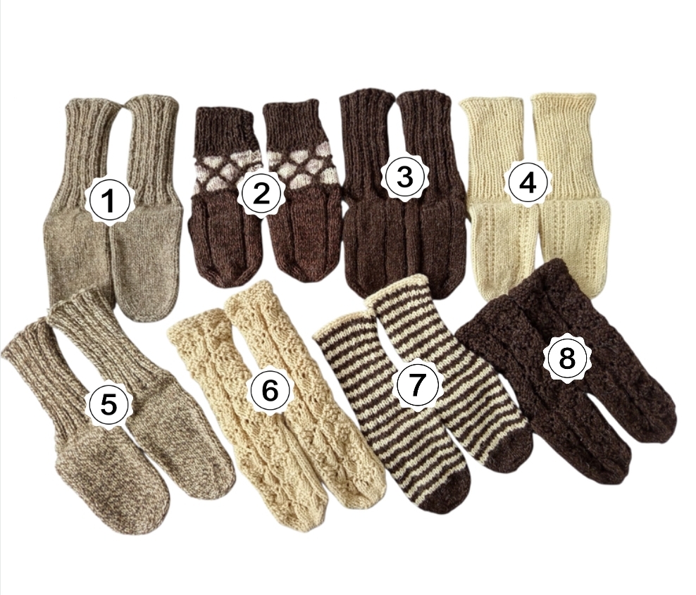 Please note: slight variations between pairs are natural and reflect the authentic handmade process and natural wool yarn.