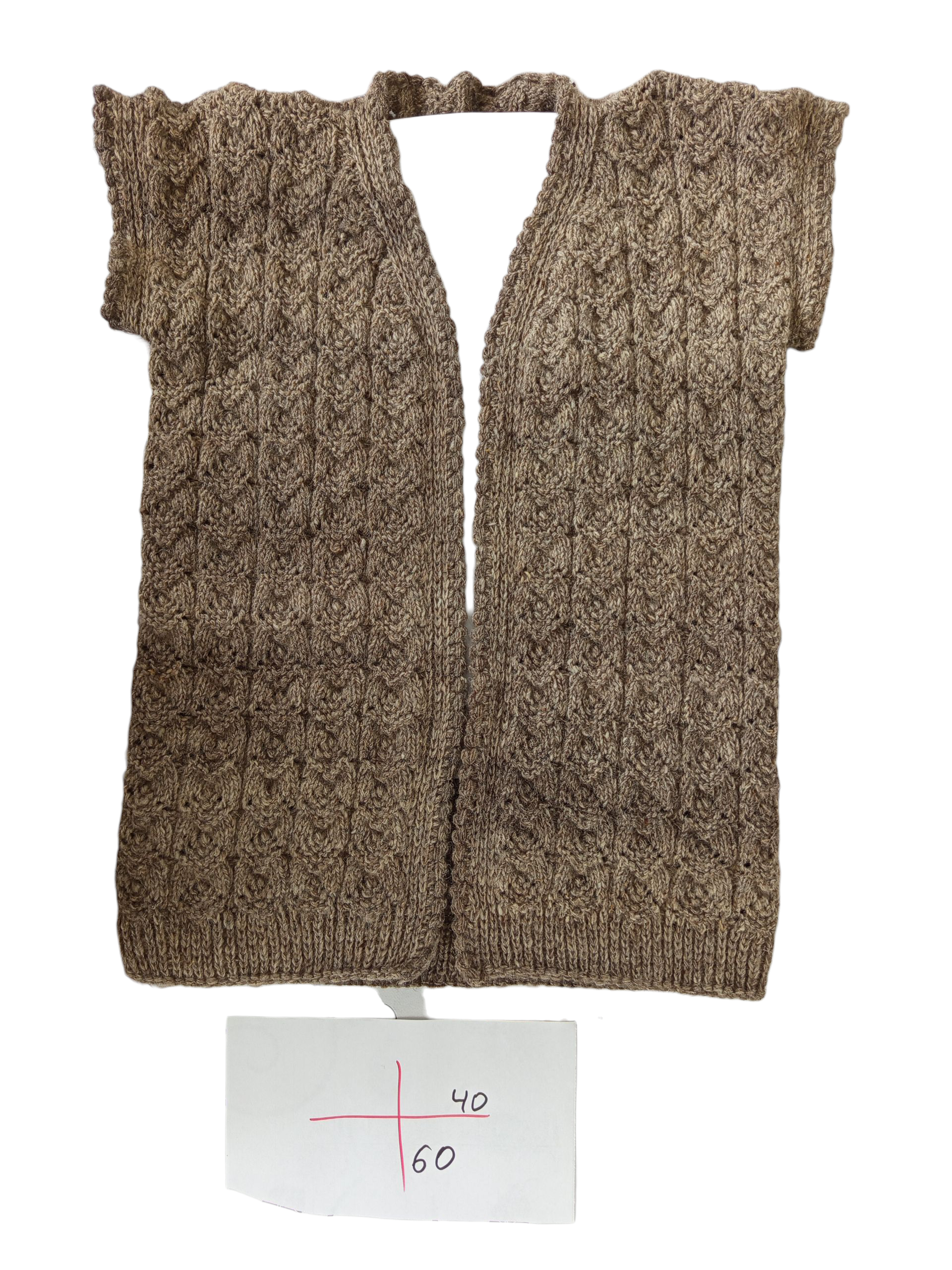 This vest carries the soul of natural wool and the comfort of something truly timeless. Made from 100% home-spun wool yarn, it has a rich, dense texture that feels grounding, warm, and incredibly comforting against the body. The knit pattern creates a beautiful visual depth, giving the piece character and a quiet strength.