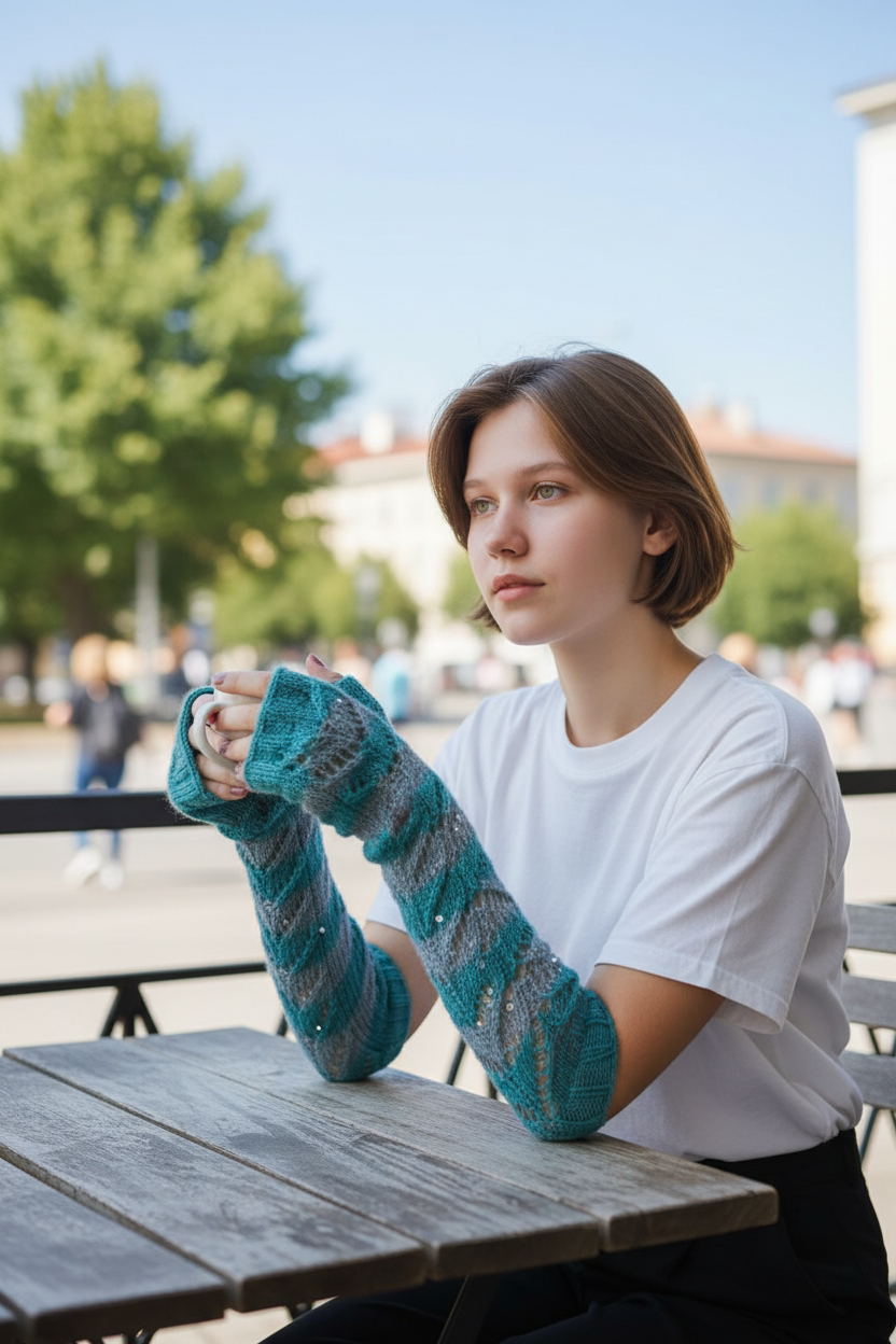 These hand-knitted long fingerless gloves are designed to bring warmth, style, and freedom of movement. They gently wrap around the hands and wrists while leaving the fingers free – perfect for walks, coffee breaks, work, or everyday activities.